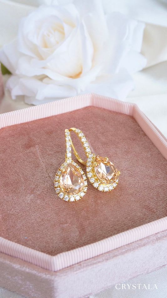 My limited edition gold crystal earrings and bracelets are lovingly brought to life in-house. Each one is meticulously crafted to exude elegance and sophistication, using only 18k gold-plated settings, and the finest world-class Austrian crystals unmatched in brilliance and shine.
