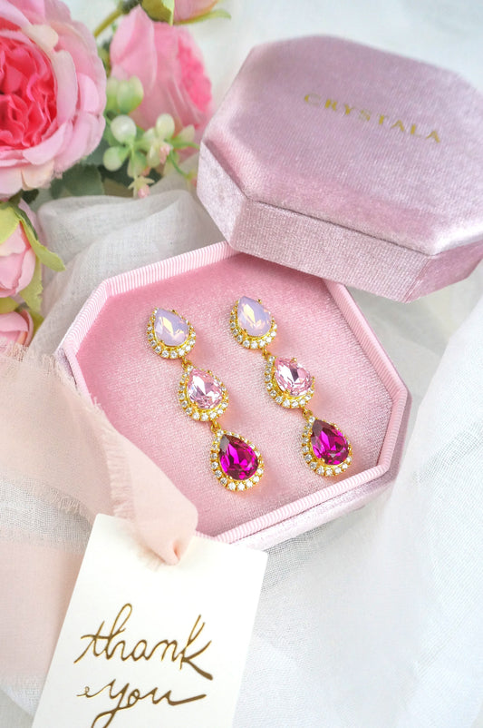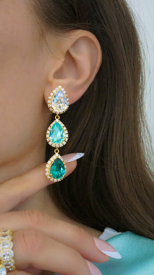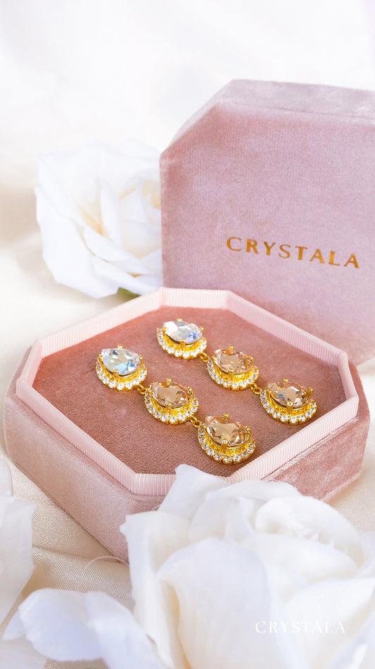 My limited edition gold crystal earrings and bracelets are lovingly brought to life in-house. Each one is meticulously crafted to exude elegance and sophistication, using only 18k gold-plated settings, and the finest world-class Austrian crystals unmatched in brilliance and shine.
