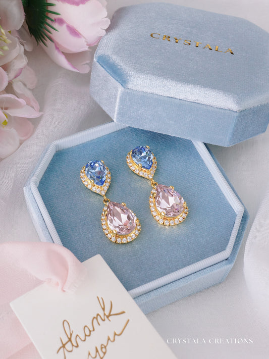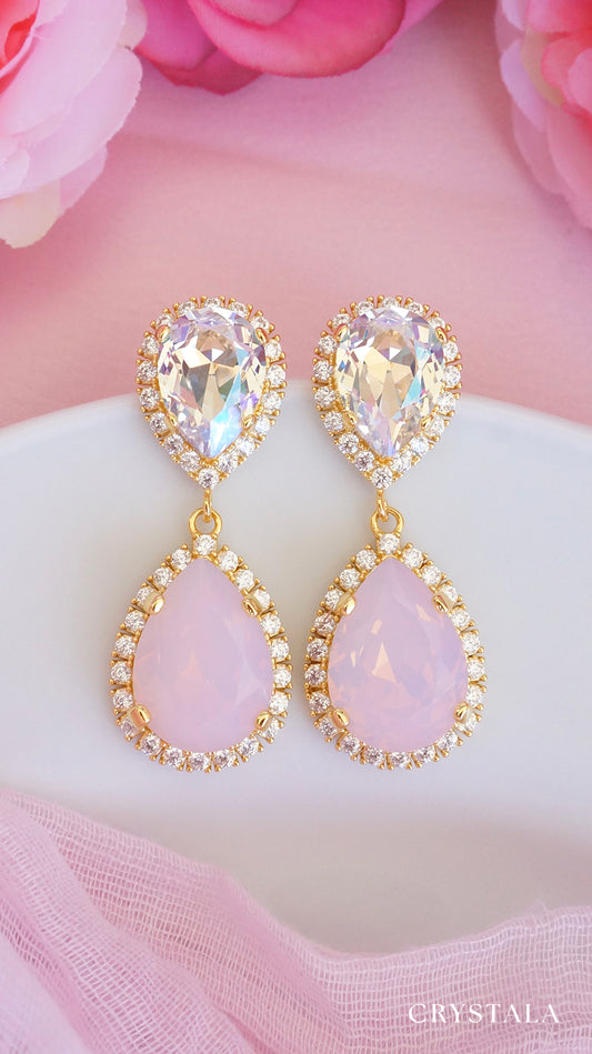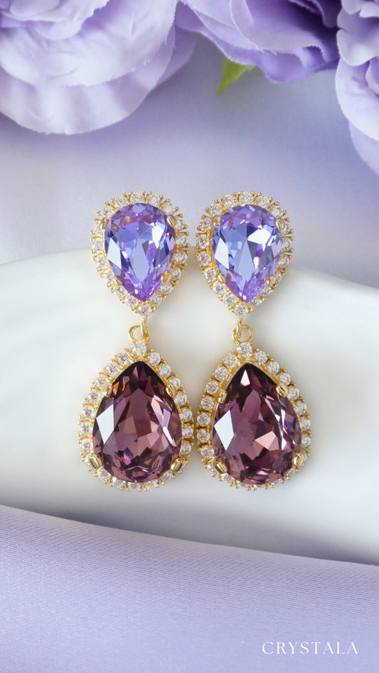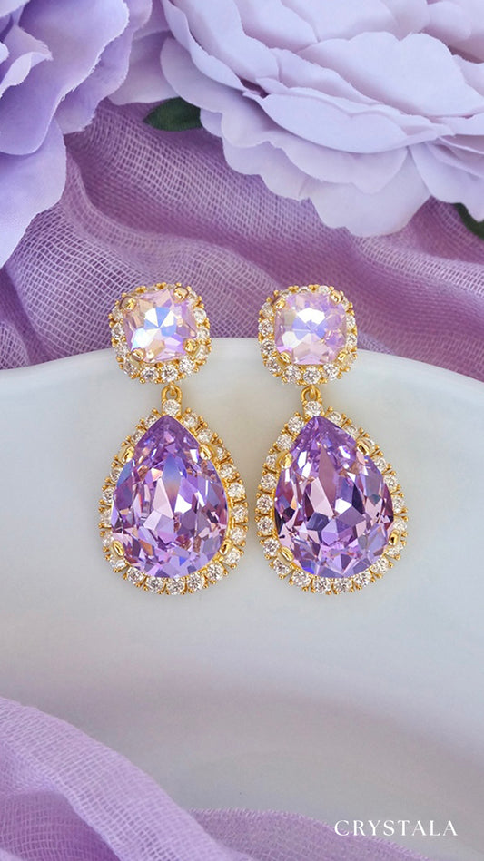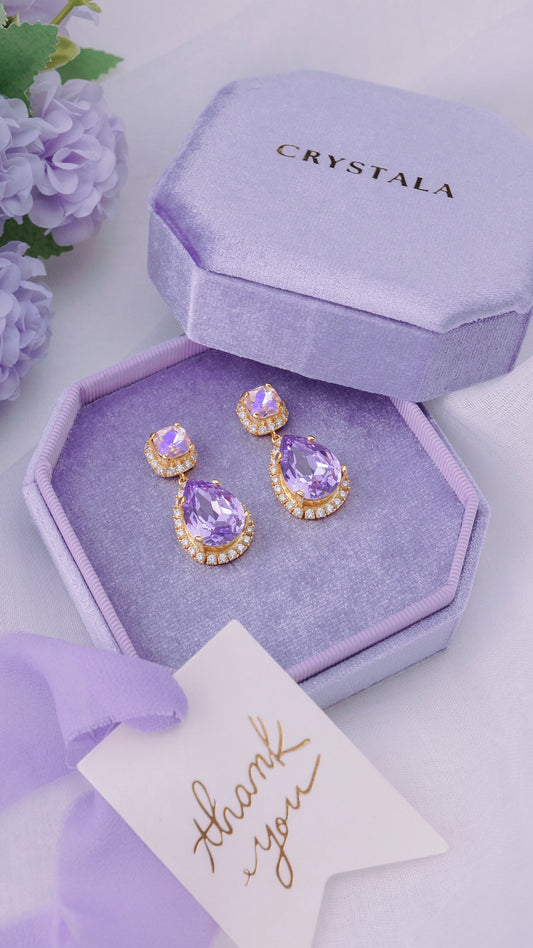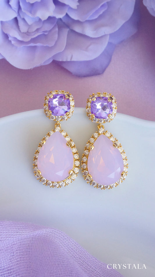 Lavender opal crystal drop earrings in 18k gold plating